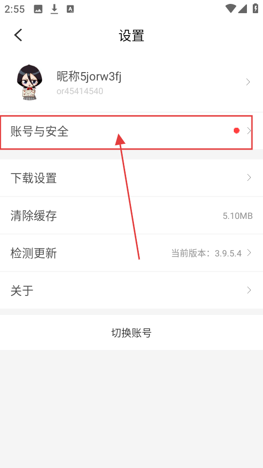 2、进入设置页面后,点击【账号与安全】,可进入账号与安全页面哦。
