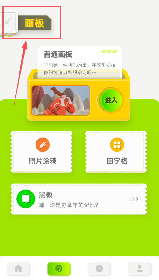 2、在主界面找到“画板”入口,选择“普通画板”,就能进入自由创作区域,这里你可以随意发挥想象画画。