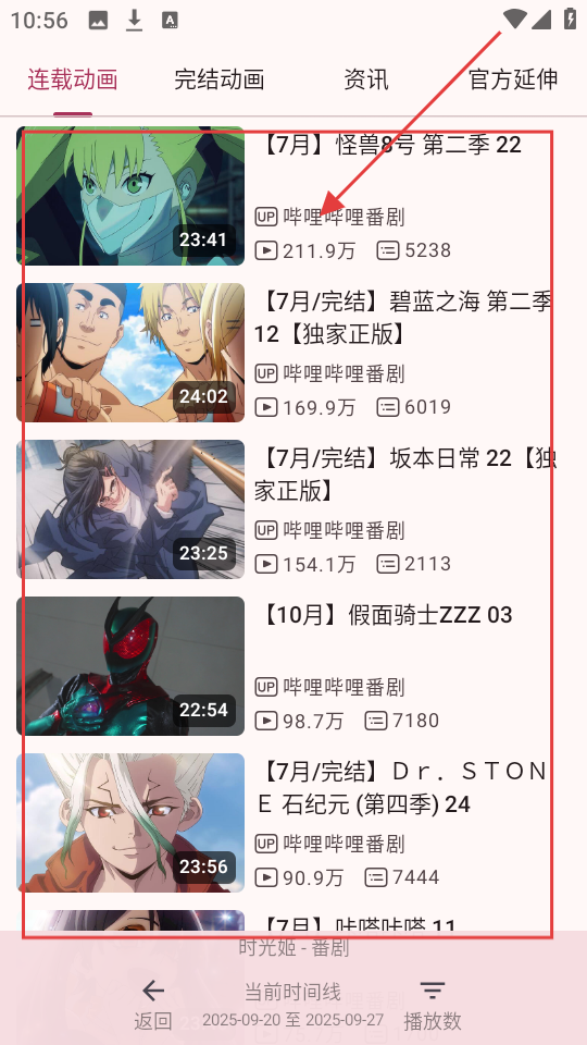 2、点击【连载动画】选项后,会展示出诸多连载动画作品,像【怪兽8号第二季22】等,任你挑选观看。