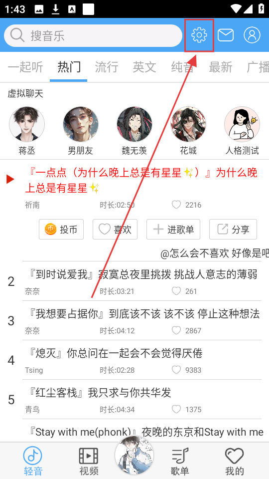 1、打开APP,点击右上角设置图标,进入设置页面,准备设置定时播放啦。