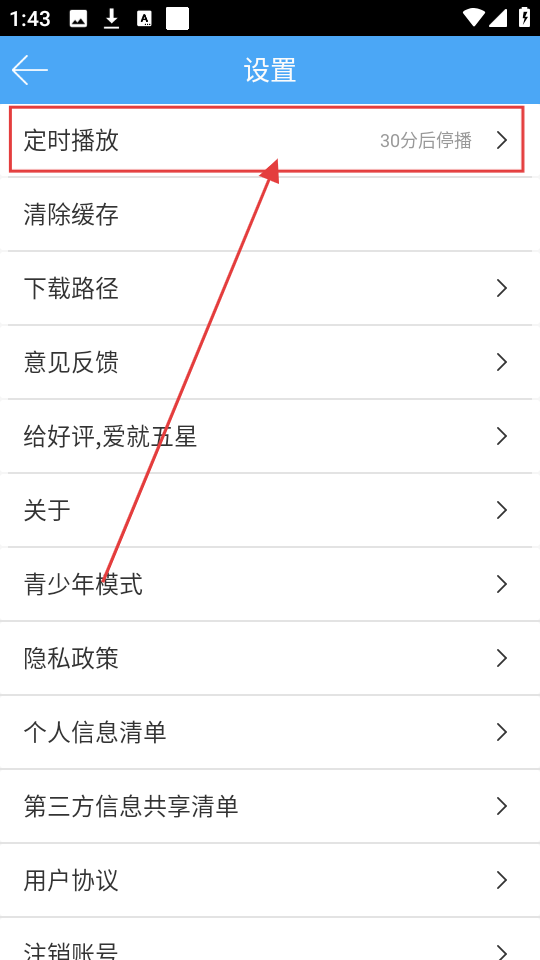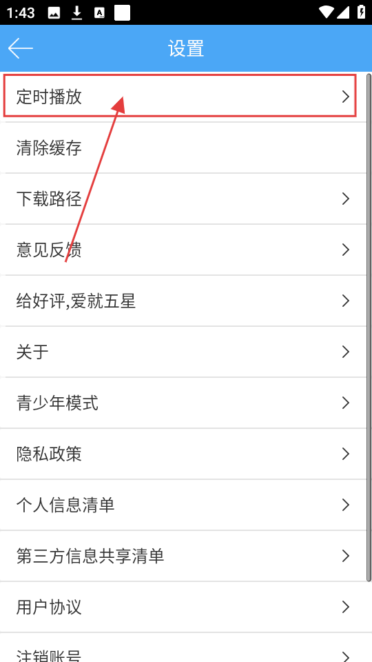 2、在设置页面,找到【定时播放】选项并点击,进入定时播放设置页面哦。