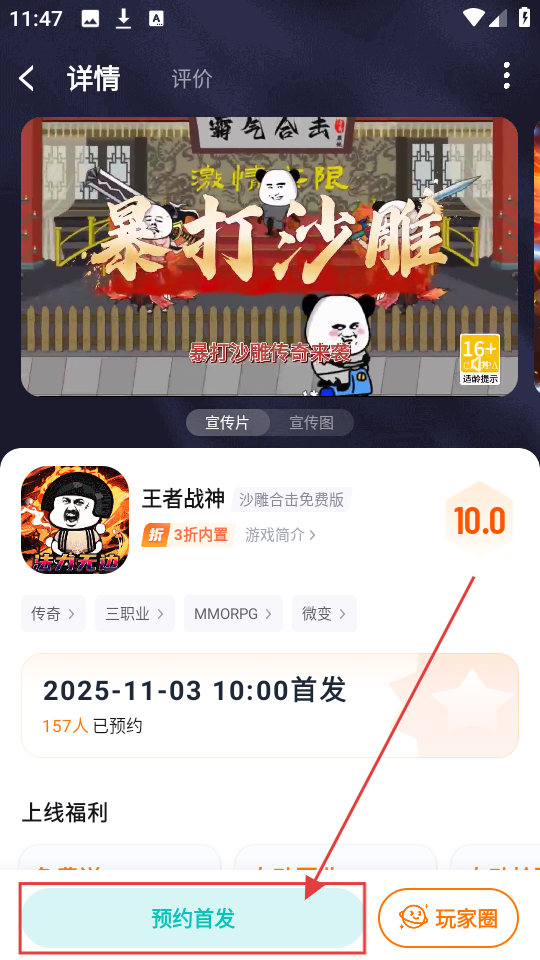 3、进入游戏详情页后,点击【预约首发】,就能预约这款游戏,不错过上线消息啦。