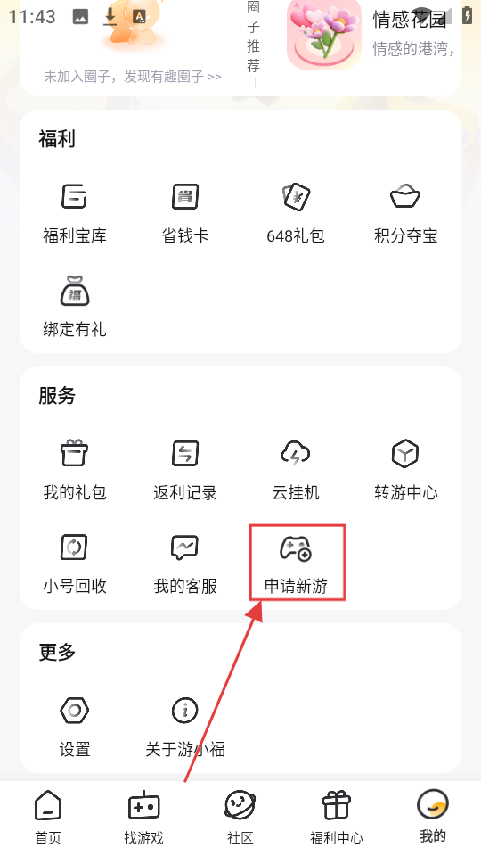 2、进入个人页面后,点击【申请新游】,可进入申请新游页面,准备申请收录新游戏哦。