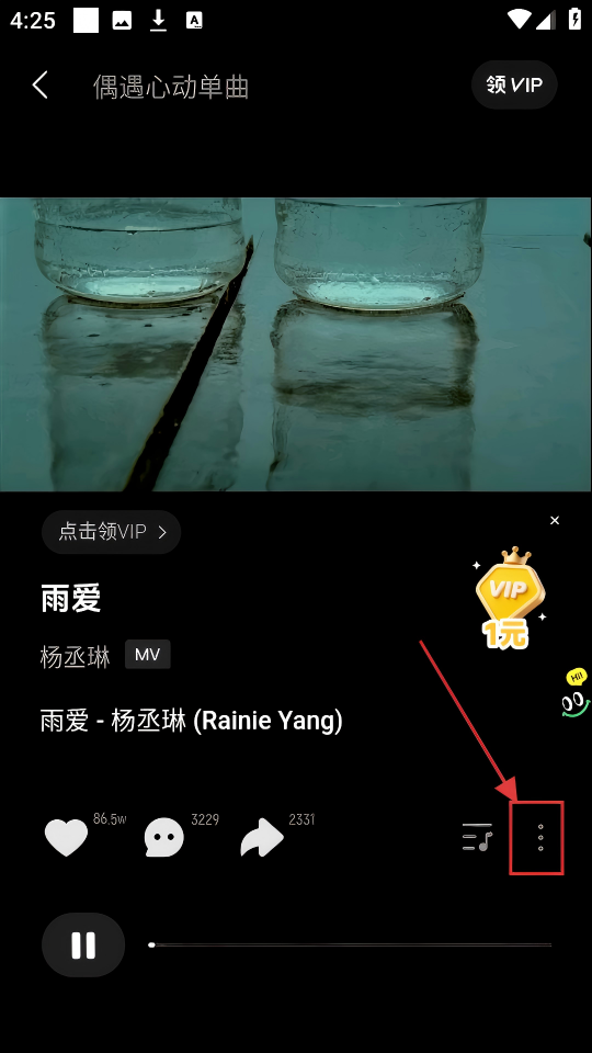 1、在【雨爱】播放页面,点击右侧三个点图标,能打开更多操作选项,快去试试。