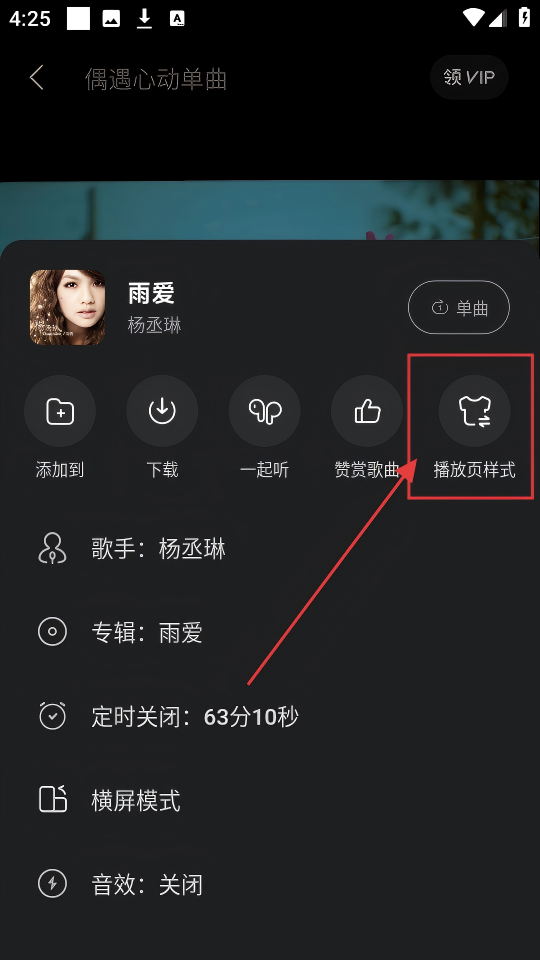 2、打开更多操作后,找到【播放页样式】选项,点击它,可进入样式选择页面。