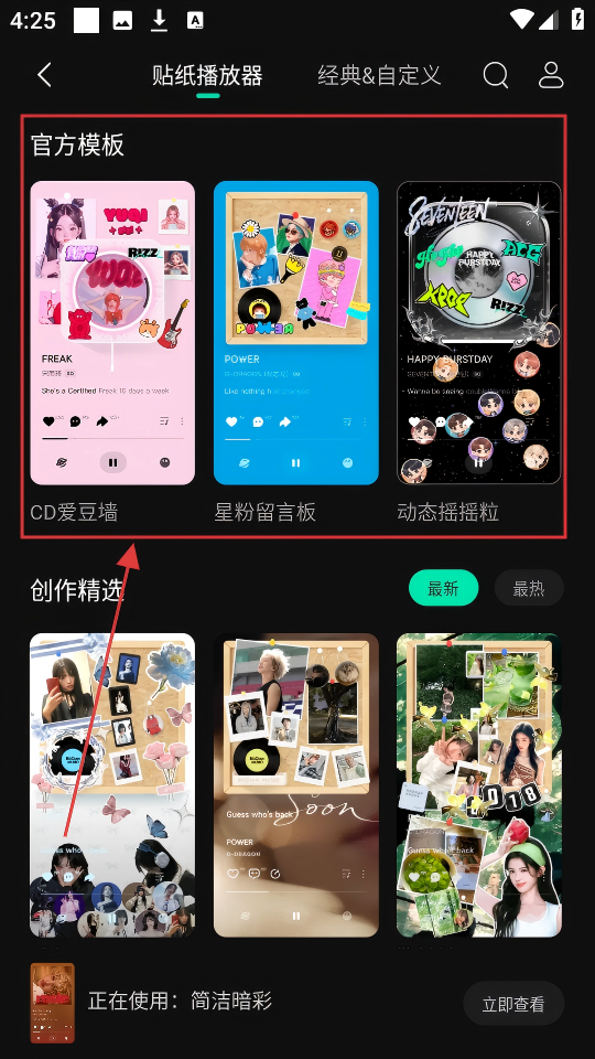 3、在样式选择页面,有【CD爱豆墙】等官方模板,挑选喜欢的样式,准备应用。