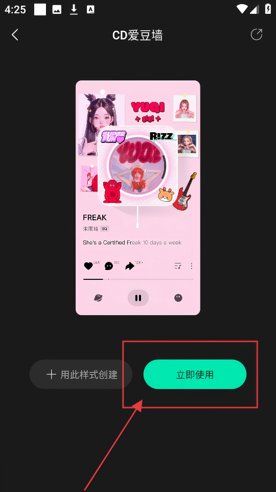 4、选好【CD爱豆墙】样式后,点击【立即使用】,就能把播放页换成该样式啦。