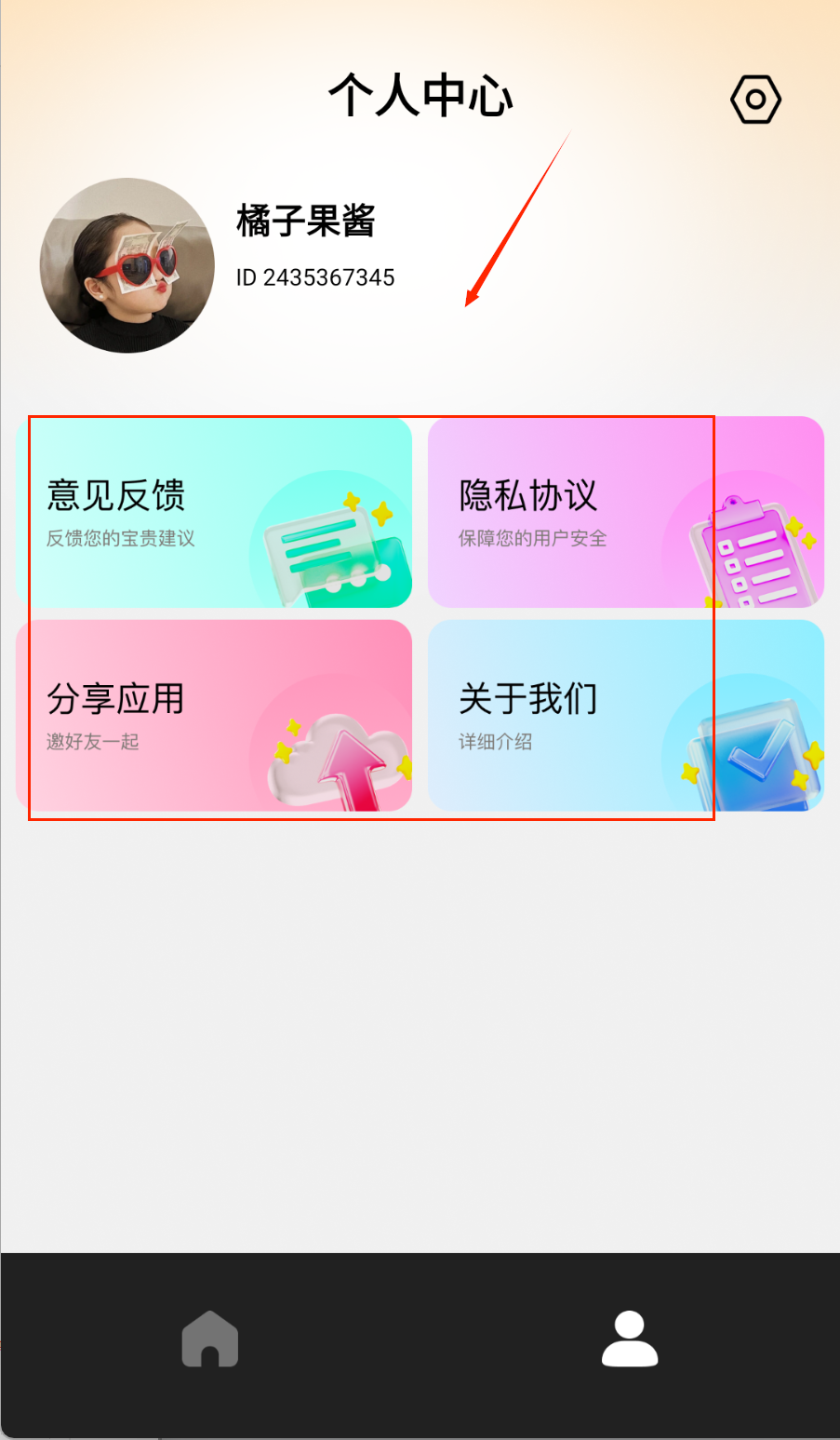 4、将软件看作两个部分:个人中心是管理和了解软件的地方,主页是使用功能的地方。两部分分工明确,共同构成完整体验。