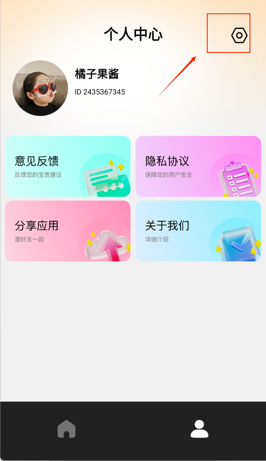1、要设置个性化选项,你可以先打开软件,点击底部导航栏的“我”进入个人中心。在这里能看到你的头像和ID,比如“橘子果酱”。