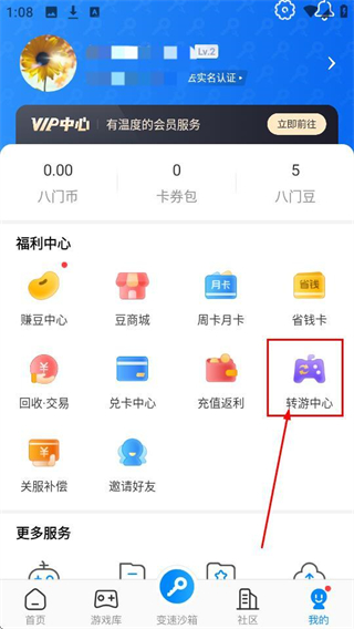 2、在个人页面点击【转游中心】,就能进入转游界面,查看可转游的游戏啦。