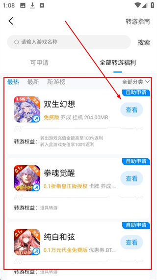 3、在转游界面找到想转游的游戏,比如《双生幻想》,点击查看转游详情哦。