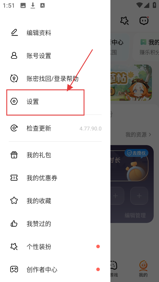 1、在侧边栏菜单里,若想管理游戏存档相关,点击【设置】选项,就能进入设置页面啦。