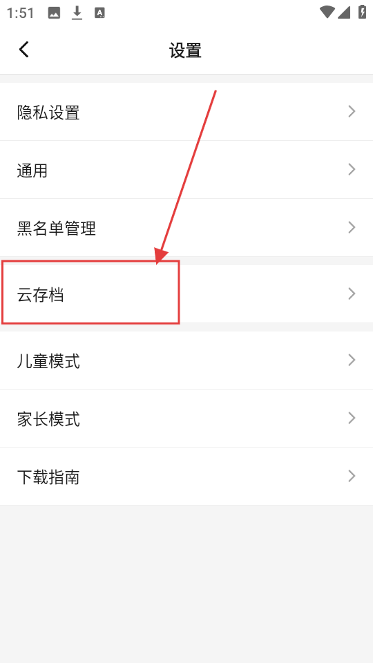 2、进入设置页面后,若想使用云存档功能,点击【云存档】选项,就能进入云存档游戏合集页面啦。