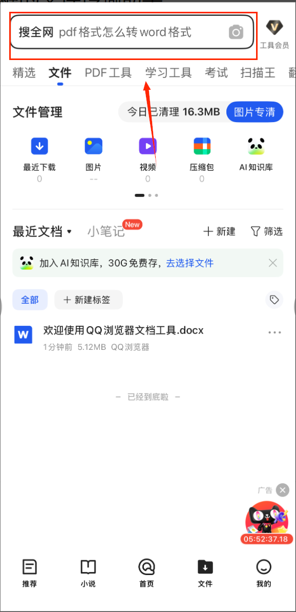 3、文件管理支持多种格式,可以按时间、类型筛选文档,还能将重要文件加入AI知识库备份,30G免费空间足够日常使用哦。