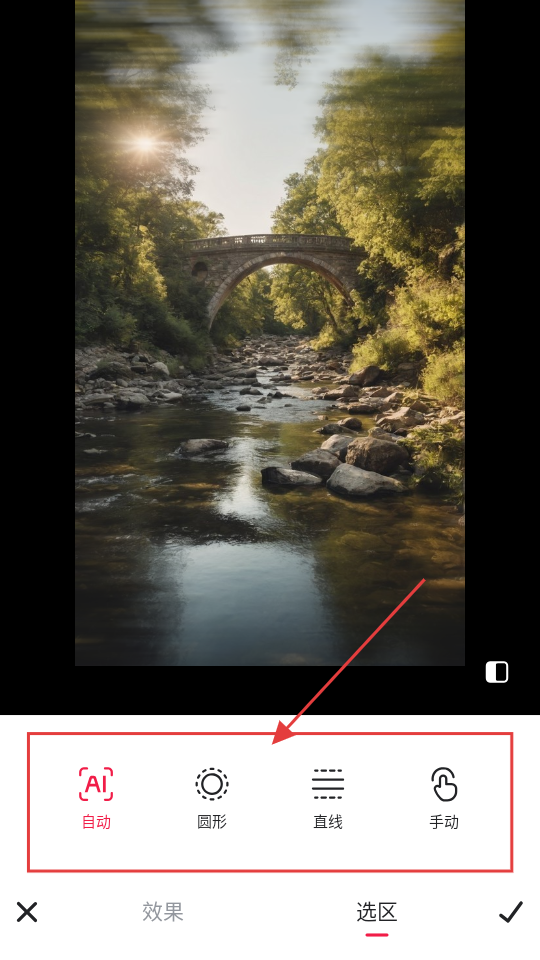 3、在选区页面,可选择选区方式,如自动、圆形、直线等,根据需求选择即可啦。