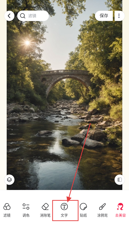 1、在图片编辑界面点击【文字】按钮,即可为图片添加文字啦。
