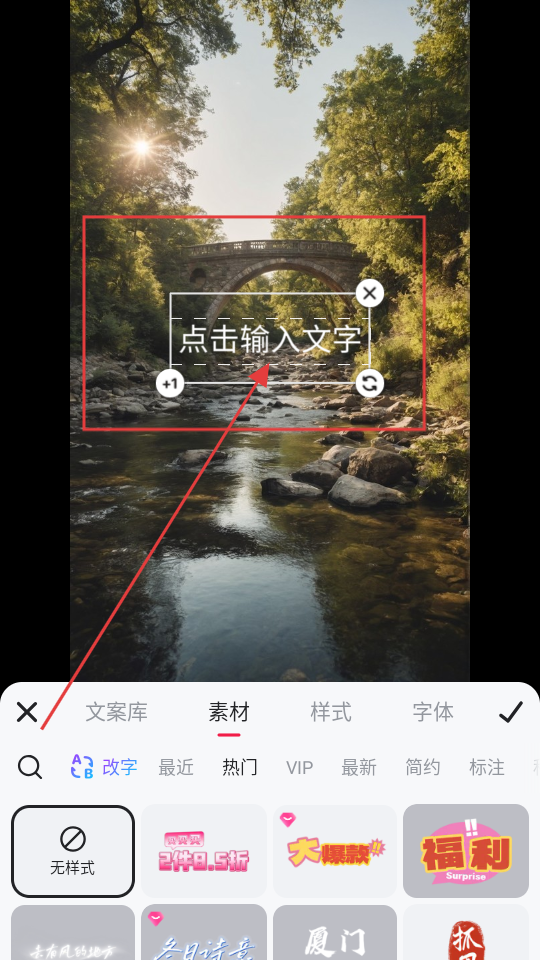 2、点击文字后,图片上会出现文字输入框,点击可输入想要的文字哦。