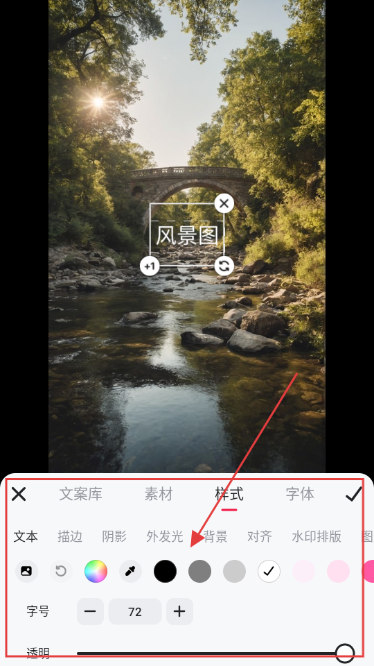 3、输入文字后,点击【样式】选项,可调整文字的颜色、字号等样式哦。