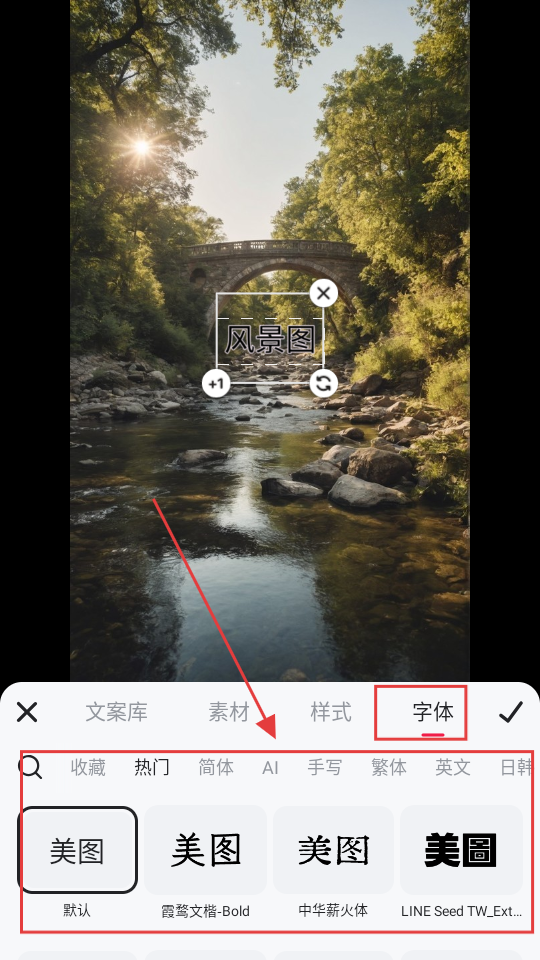 4、点击【字体】选项,可选择不同的字体来美化文字,让图片更具特色哦。
