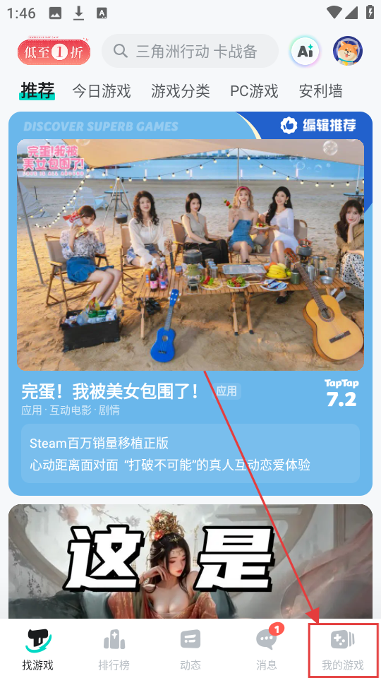 1、在手机上打开TapTap首页,点击右下角的【我的游戏】。