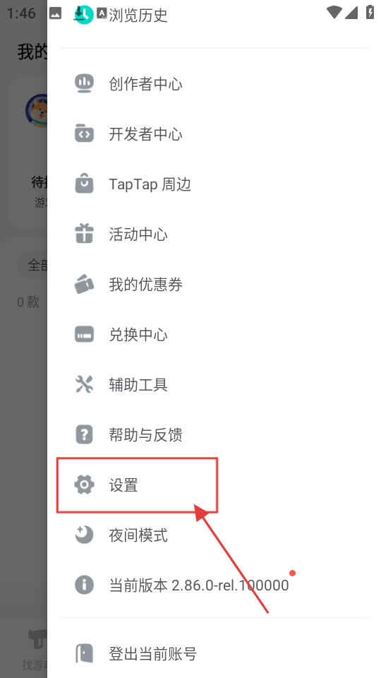 3、在展开的侧边栏里,找到【设置】选项,点击它就能进入设置页面,查看更多设置内容啦。
