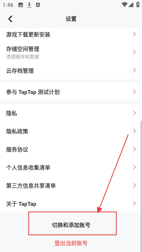 4、进入设置页面后,找到【切换和添加账号】选项,点击它就能进行账号的切换或添加操作啦。