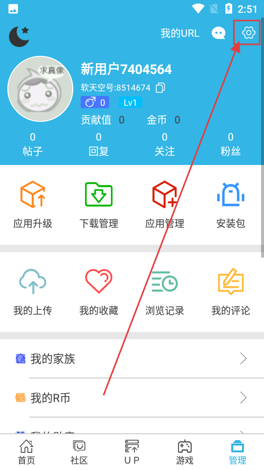 2、进入个人管理页面后,点击右上角设置图标,可进入设置页面哦。