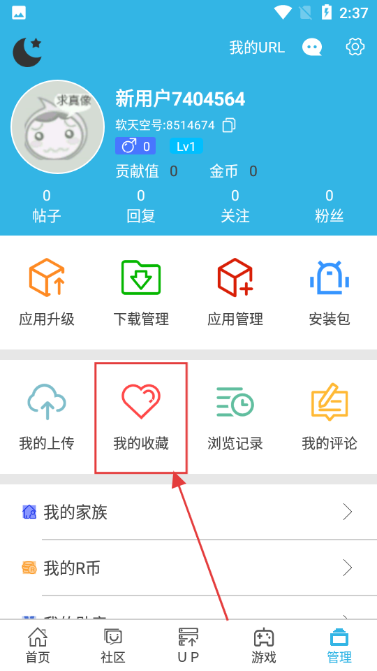 3、进入【管理】页面,找到【我的收藏】选项并点击,就能查看自己收藏的游戏啦。