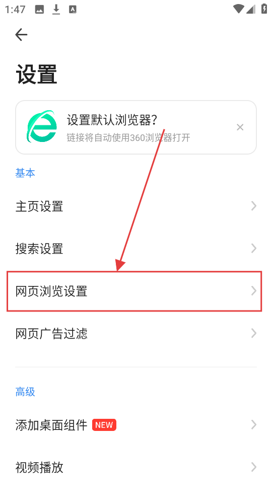 2、在设置页面,找到【网页浏览设置】选项并点击,进入网页浏览设置页面哦。