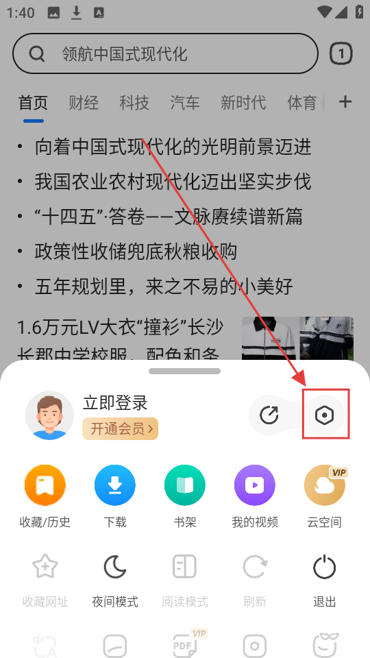 2、展开功能菜单后,找到【设置】图标,点击它能进入设置界面,调整软件各项参数啦。