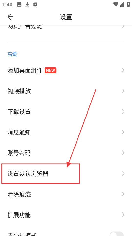 3、在设置界面,有【设置默认浏览器】选项,点击它可进入默认浏览器设置流程哦。