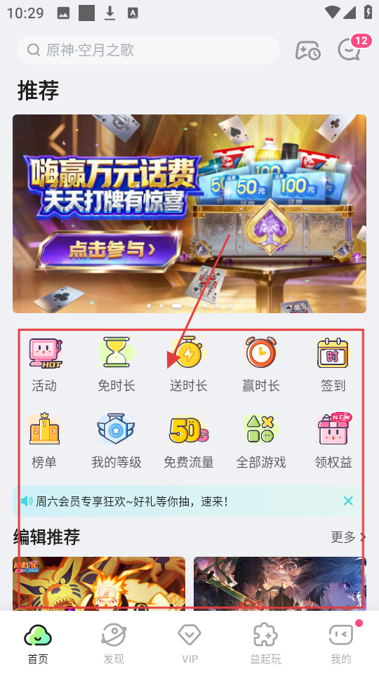 2、在首页中有着软件为你推荐的游戏,以及一些热门的活动: