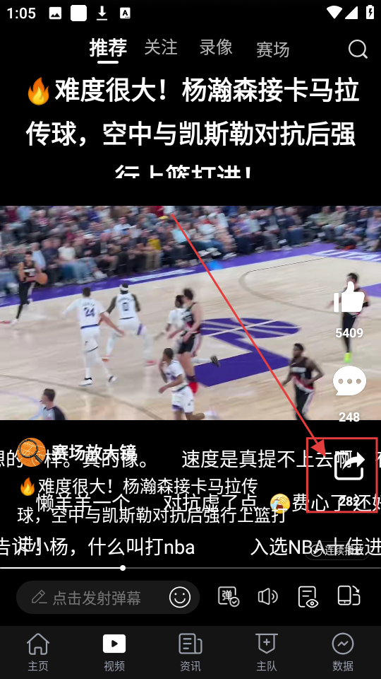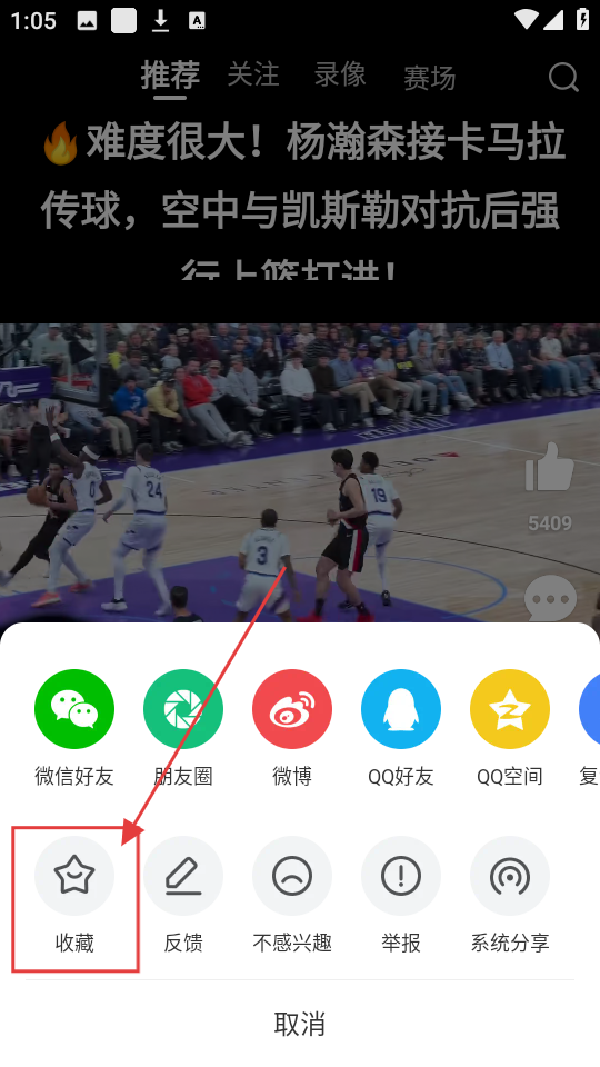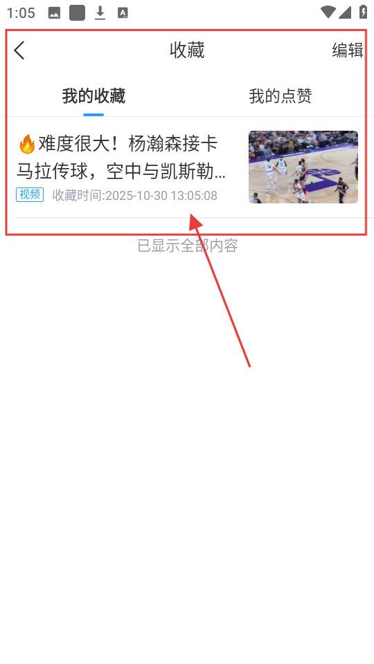 4、在收藏页面,可看到已收藏的视频【难度很大!杨瀚森接卡马拉传球...】,随时可点击查看哦。