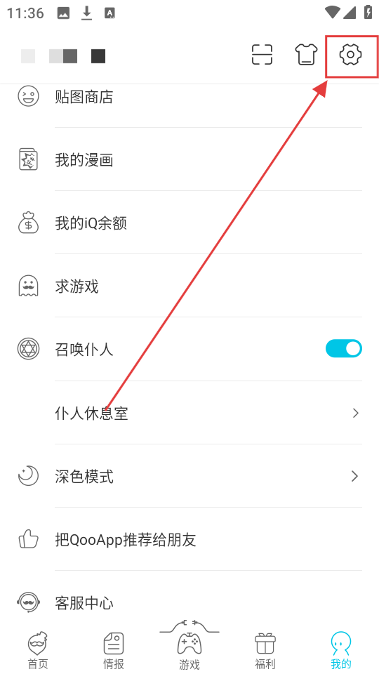 2、进入个人页面后,点击右上角设置按钮,可进入设置页面,调整软件相关设置哦。