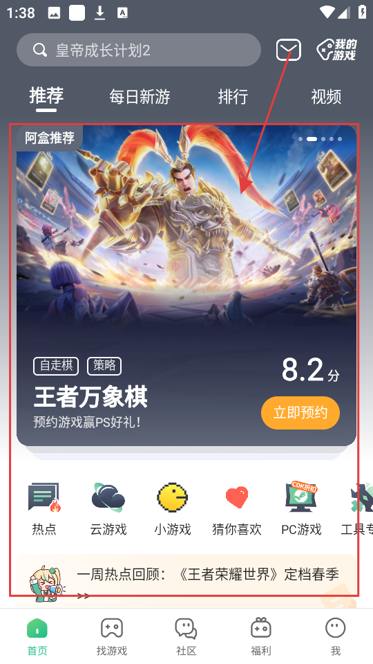 1、在首页找到感兴趣的游戏比如【王者万象棋】就点击进入哦,进行游戏了解体验呢。