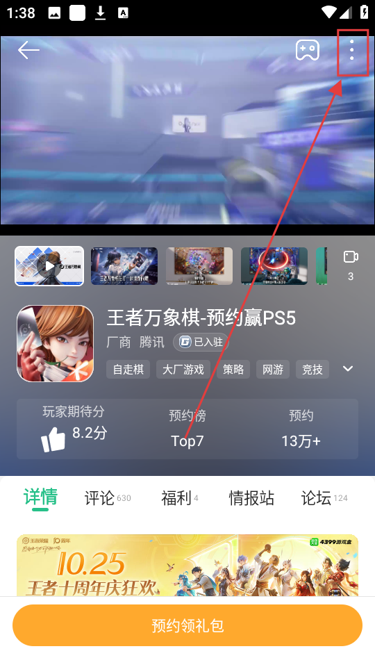 2、进入游戏页面后,点右上角【...】按钮呀,展开更多操作选项啦。
