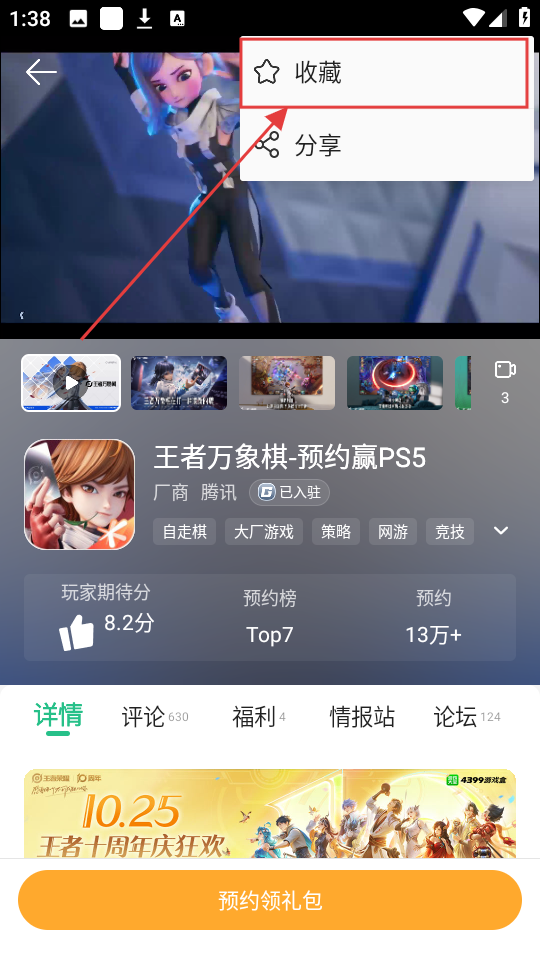 3、展开后点【收藏】选项哦,这样就能把游戏加入收藏啦。