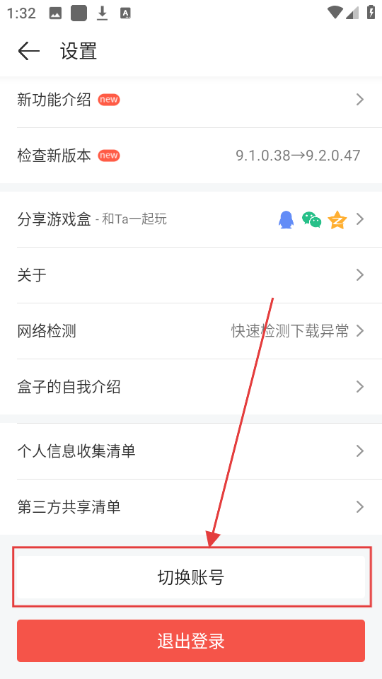 3、在设置里点击【切换账号】,就能进入账号切换页面啦。