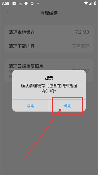 4、在弹出的提示框里,点【确定】按钮就能完成本地缓存的清理,释放应用占用的存储空间哦。