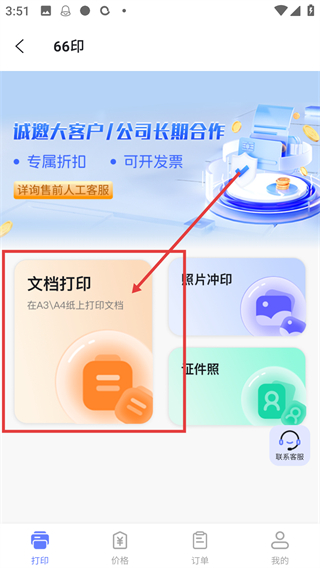 2、进入在线打印页面后,点击【文档打印】选项,可进入文档打印的设置界面,配置打印相关参数哦。