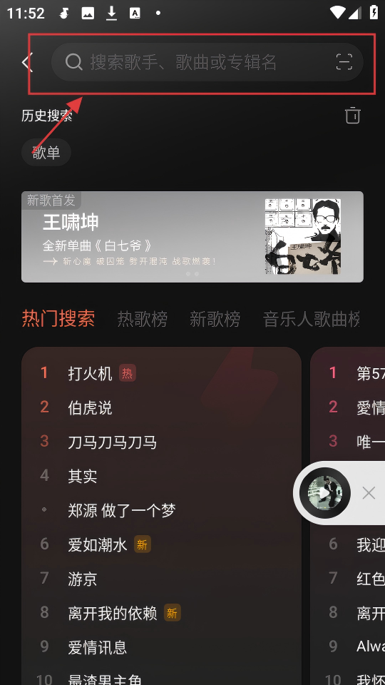 1、在APP搜索页,顶部搜索框可输入歌手、歌曲或专辑名,快速查找想听的音乐,超方便的。