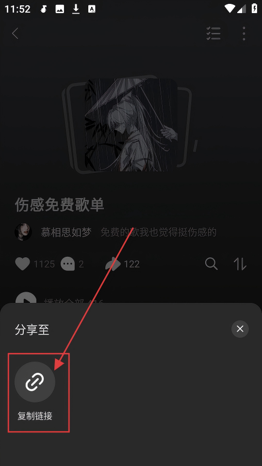4、点击分享后,弹出分享选项,选【复制链接】,就能复制歌单链接,分享到其他平台,超赞的。