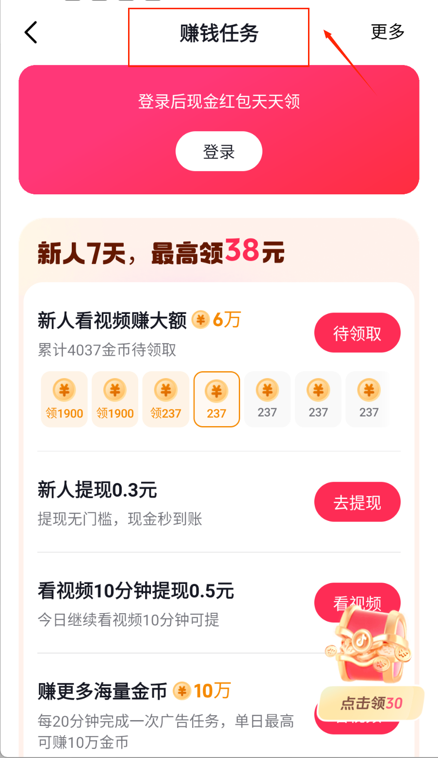 4、软件设计了很多互动奖励,在赚钱板块完成日常任务能获得金币奖励,积累到一定额度可以提现,增加了使用黏性呢。