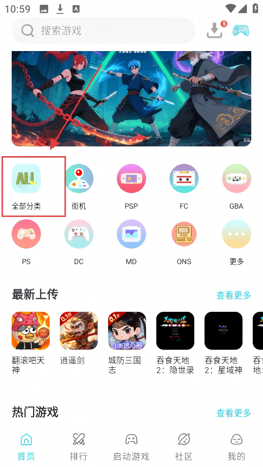 1、首页上有【全部分类】按钮,点击它进入分类页面,能看到超多游戏分类,超方便。
