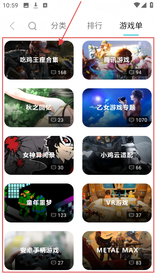 2、分类页面里,点击【游戏单】,能看到各类游戏单,方便找各种主题的游戏哦。