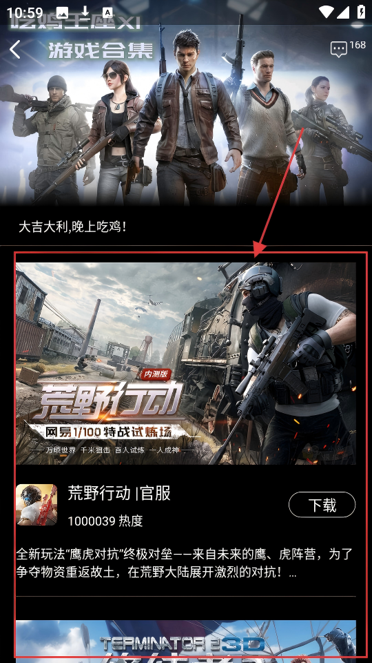 4、进入【吃鸡王座合集】,看到像【荒野行动】这样的游戏,点击【下载】就能获取啦。