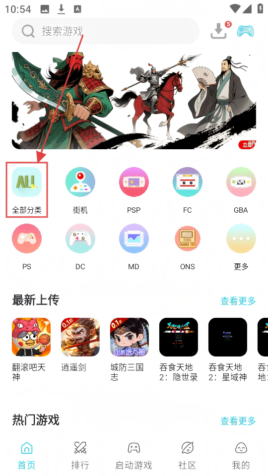 1、在首页,点击【全部分类】,能进入分类页面,方便查找各类游戏。