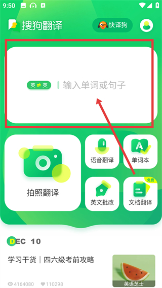 1、在搜狗翻译首页点输入框,可选择语言方向后输入内容,后续能进行翻译或调用其他功能啦。