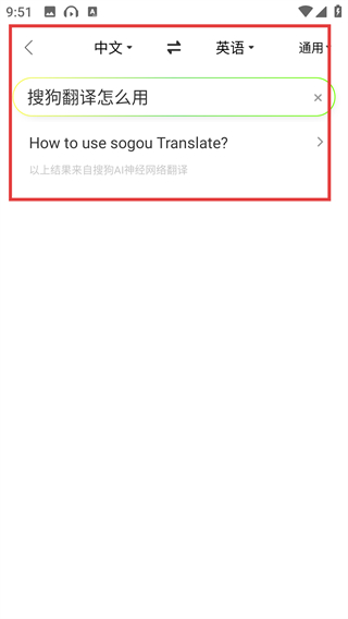 2、输入内容后会自动生成翻译结果,像输入【搜狗翻译怎么用】就能得到对应的英文翻译哦。