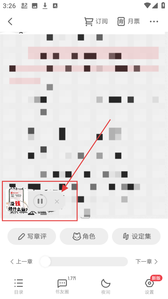 4、在阅读页面,会出现听书悬浮窗,可通过悬浮窗上的按钮,控制听书的播放与暂停等。